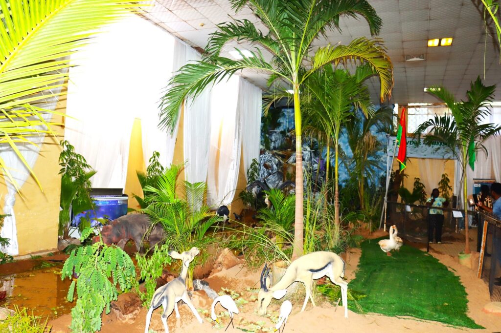 « Il y a des animaux sauvages, vivants et représentatifs. Nous avons essayé de représenter la faune et la flore pour témoigner de ces valeurs environnementales de façon générale. Quand on parle de tourisme, le Burkina est très riche et regorge de beaucoup de potentialités. C’est à nous maintenant de les mettre en valeur », poursuit l’artiste, tout en donnant des instructions à ses collaborateurs afin que les visiteurs n’irritent pas le singe.