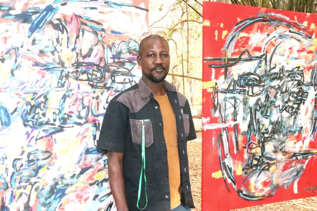 Harouna Ouédraogo, artiste peintre, est aussi à sa première exposition à Wekré, bien qu’ayant plus de 25 ans de pratique. A cette 6ᵉ édition, il propose des portraits cachés. Des superpositions de visages qui donnent une impression hyper abstraite « L’idée est de proposer que le spectateur arrive à décortiquer, reconstruire, reconstituer les portraits proposés », note-t-il.